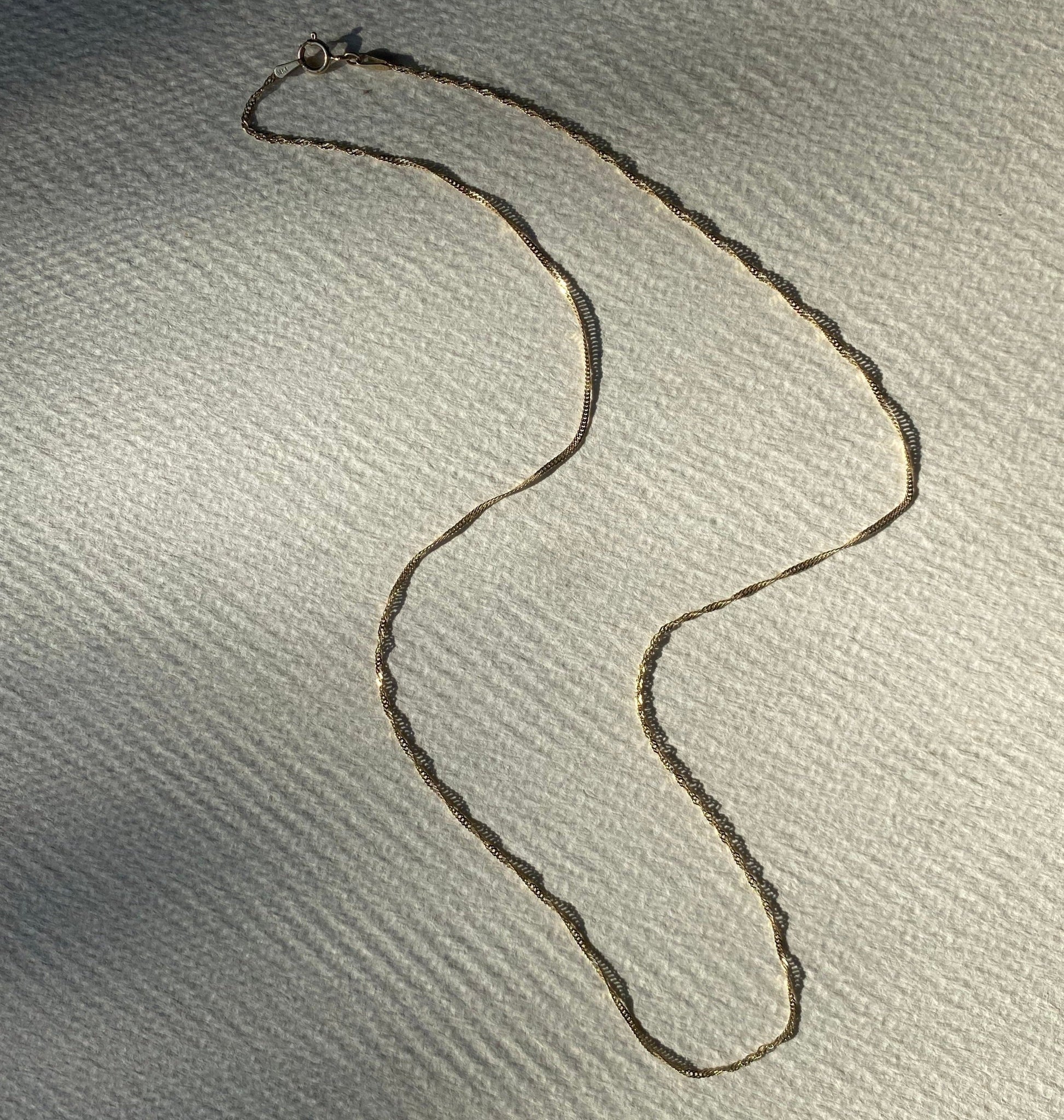 Dainty, flattering everyday chain with the perfect amount of movement and shimmer. Wear her alone or slip on your favorite charm. Lightweight, delicate twist/rope design.