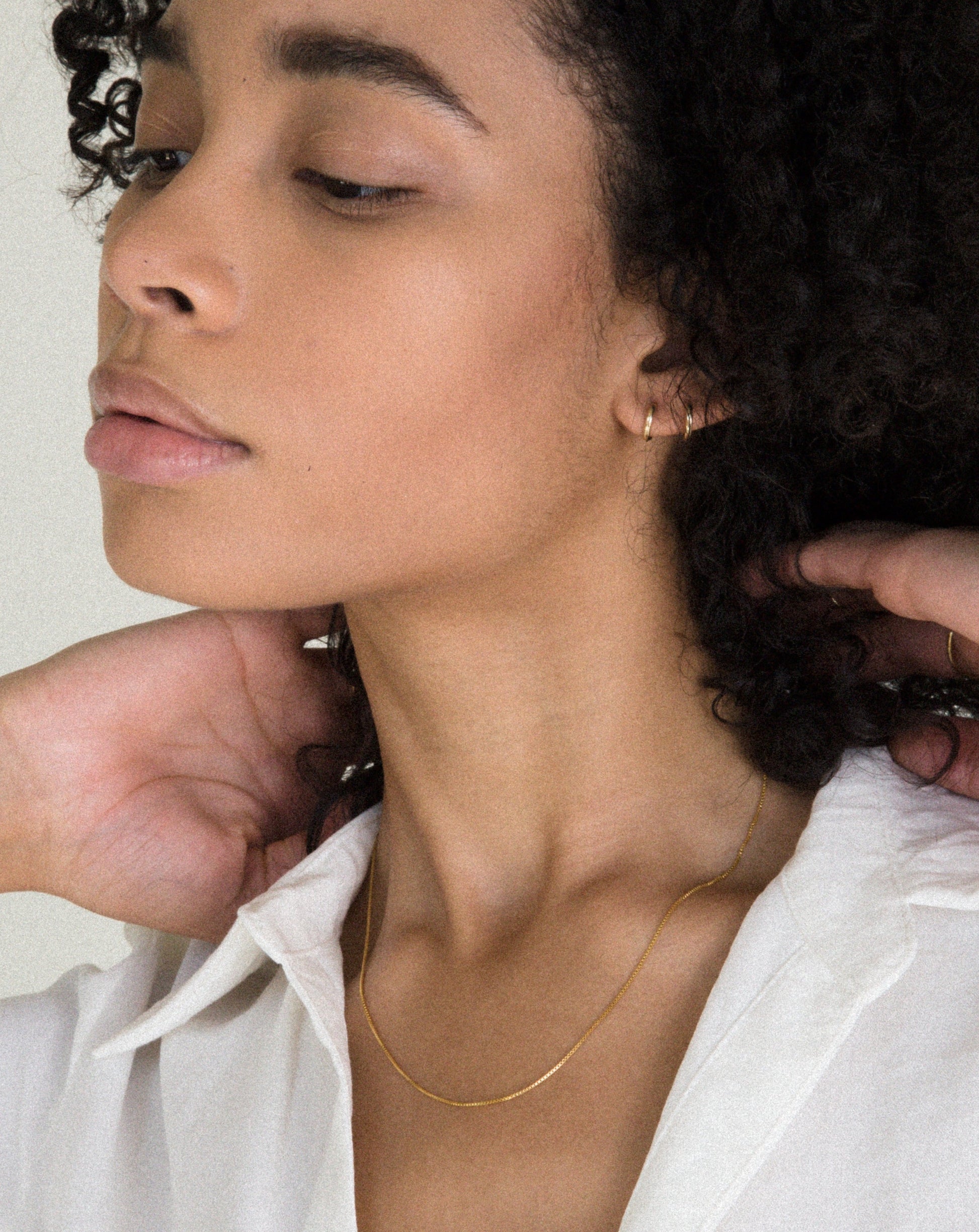 The infinitely adjustable box chain. Spring clasp with adjustable slider ball.