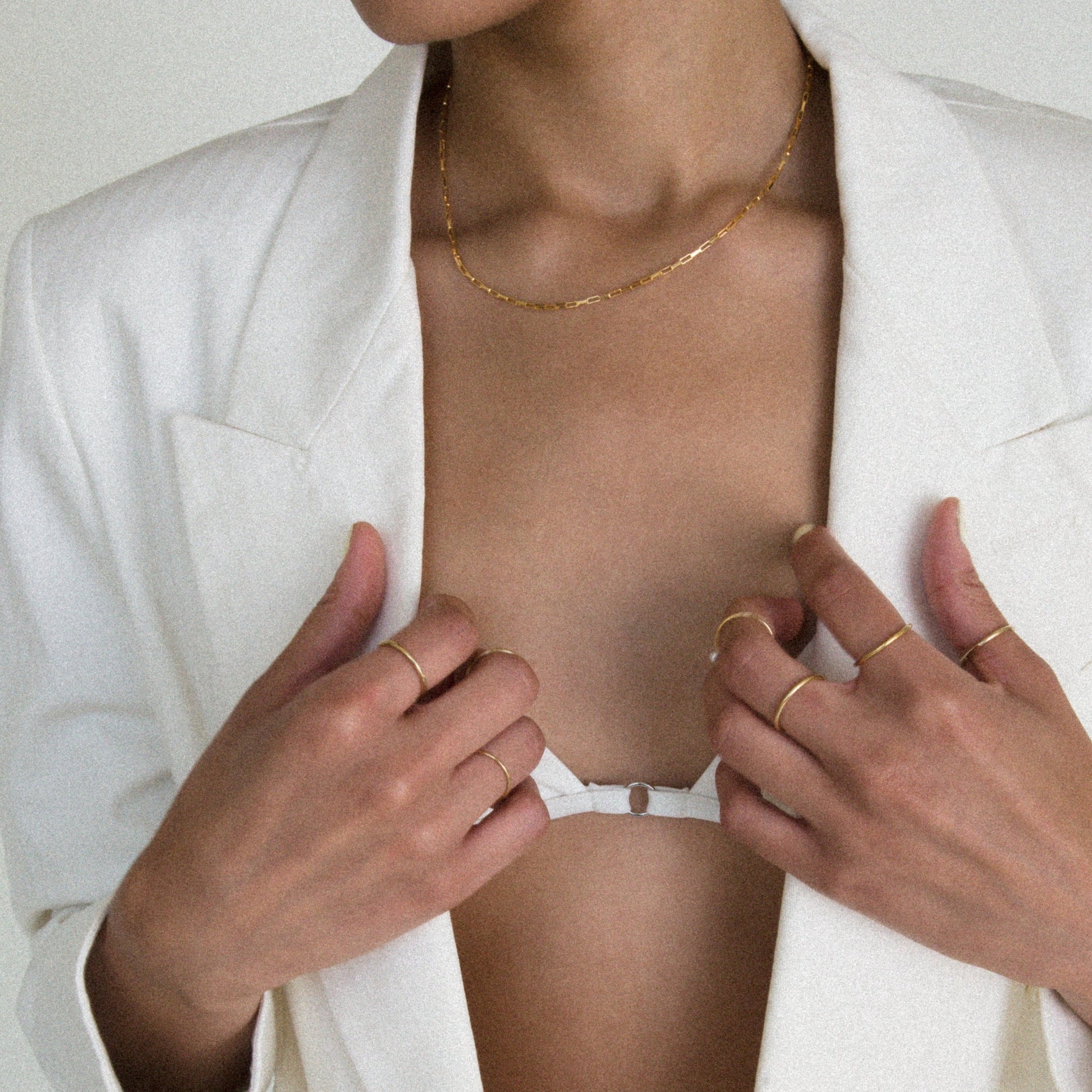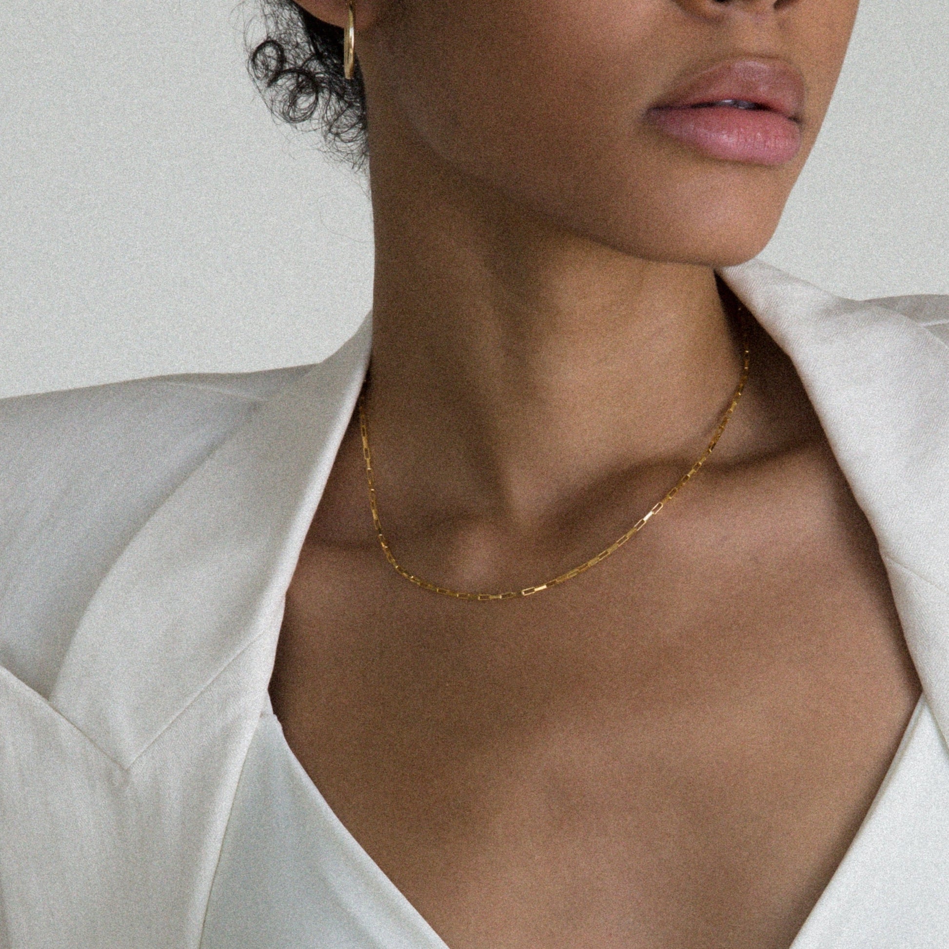 Simplistic and durable for everyday wear. Generally fits at the base of a neck, but adjustable to your preference.