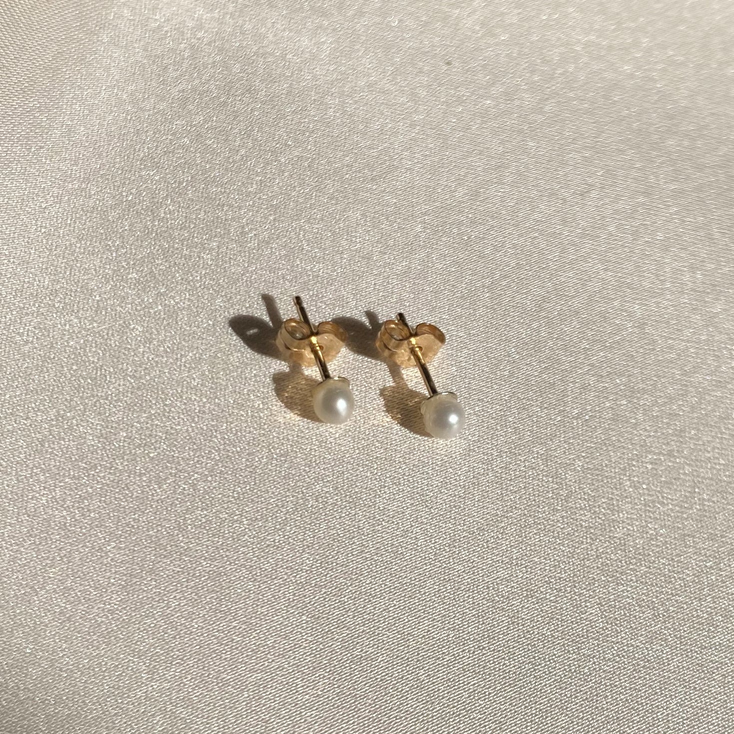 Tiny genuine freshwater pearl studs on 14K gold-filled posts.