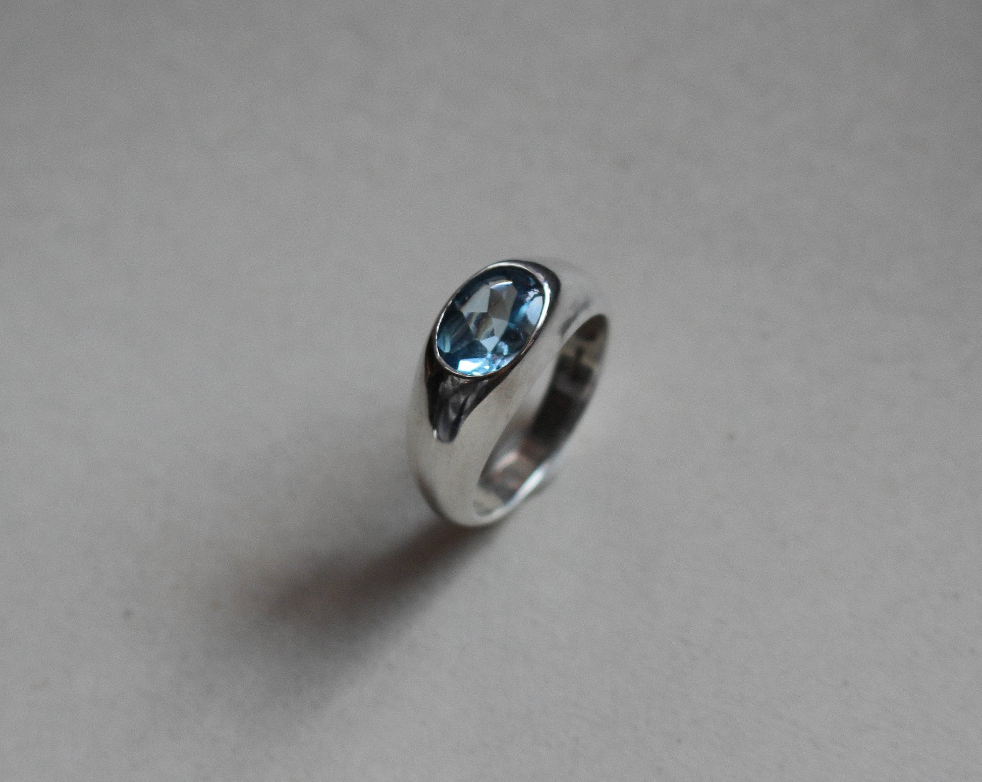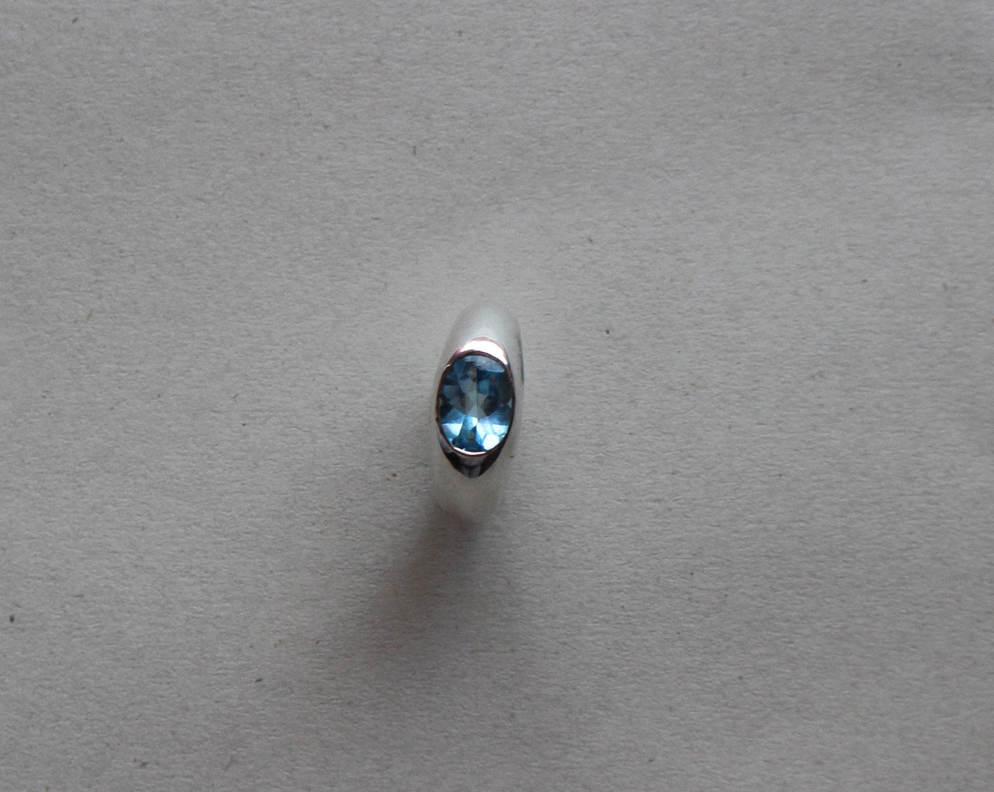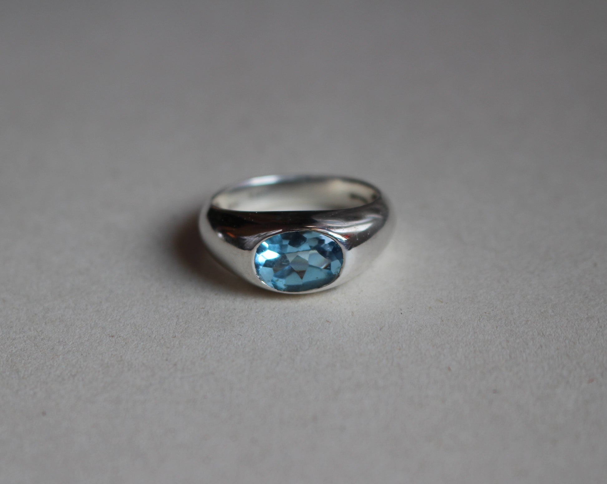 Vibrant buff-top blue topaz nestled in smooth sterling silver. Handmade.