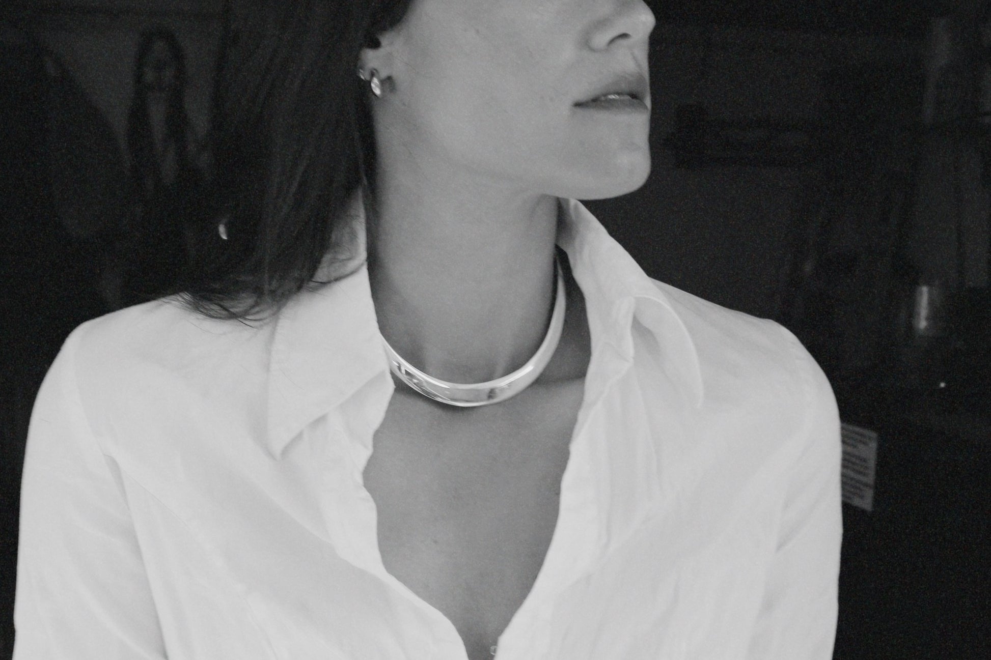 Stunning hand-warped sterling silver neck collar. Comfortable fit.